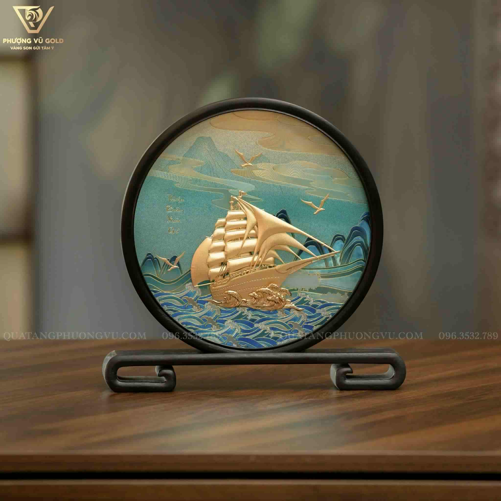 Đĩa Thuyền Mạ Vàng 24K – Quà Tặng Thuận Buồm Xuôi Gió | Phượng Vũ Gold