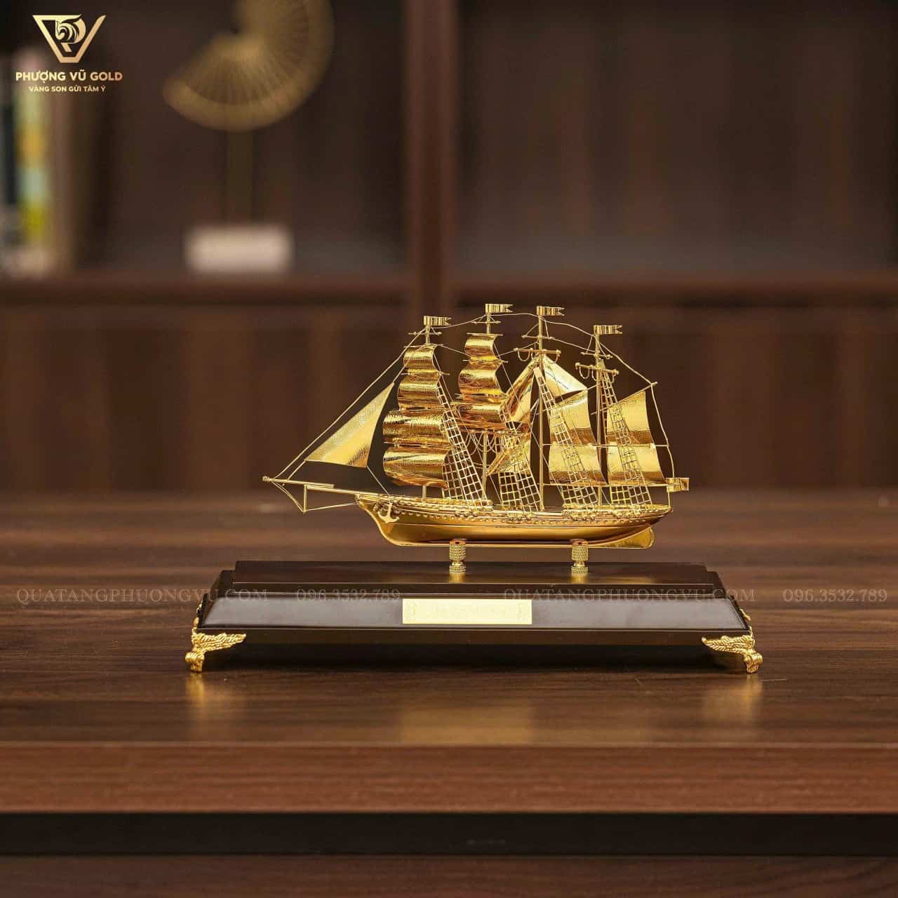 Mô Hình Thuyền Mạ Vàng 24K Quà Tặng Khai Trương | Phượng Vũ Gold