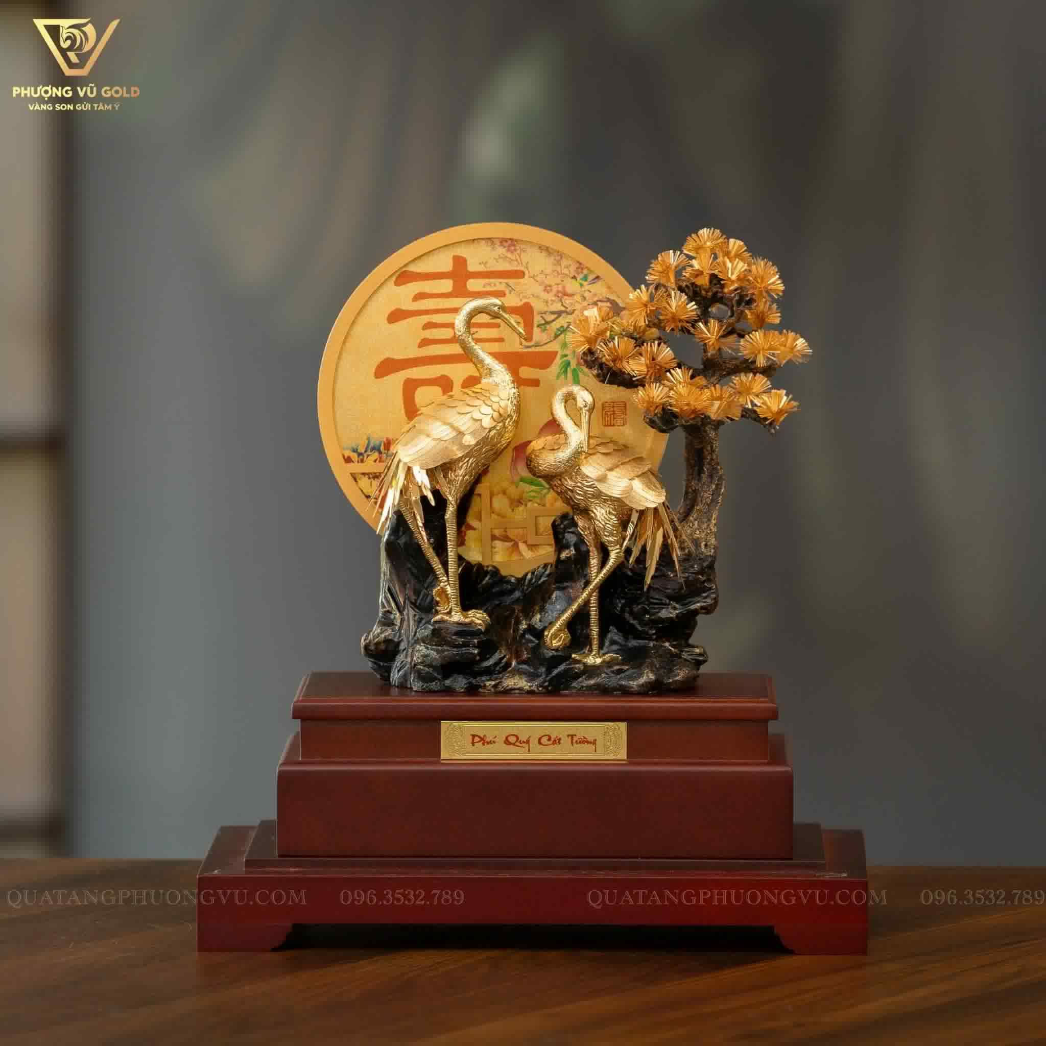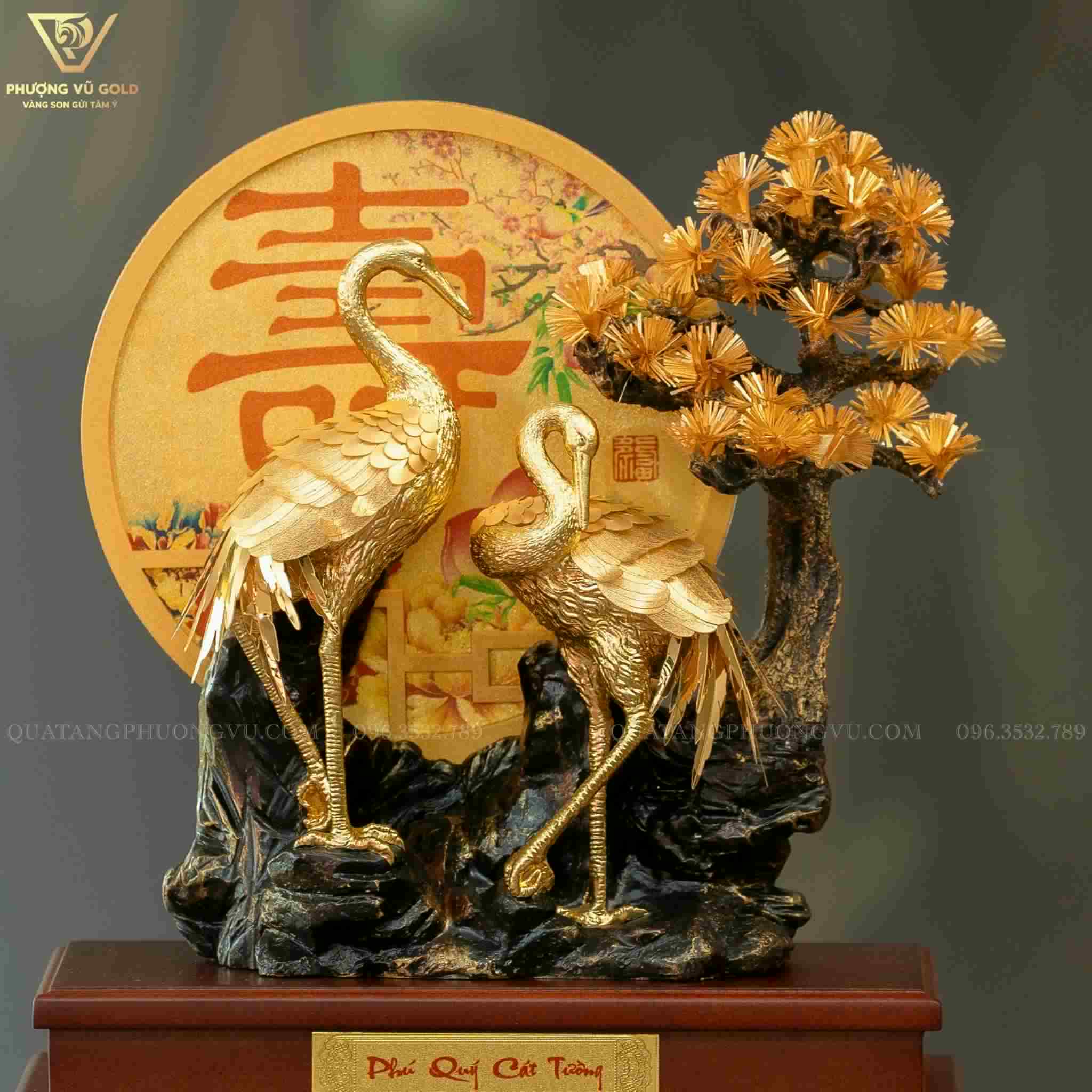 Quà Mừng Cưới – Mừng Thọ Tùng Hạc Niên Niên Dát Vàng 24K – Quà Tặng Cao Cấp | Phượng Vũ Gold