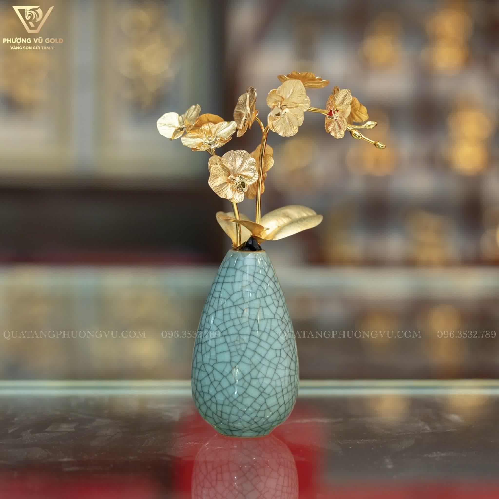 Lọ Hoa Lan Dát Vàng 24K – Quà tặng văn phòng sang trọng, tinh tế