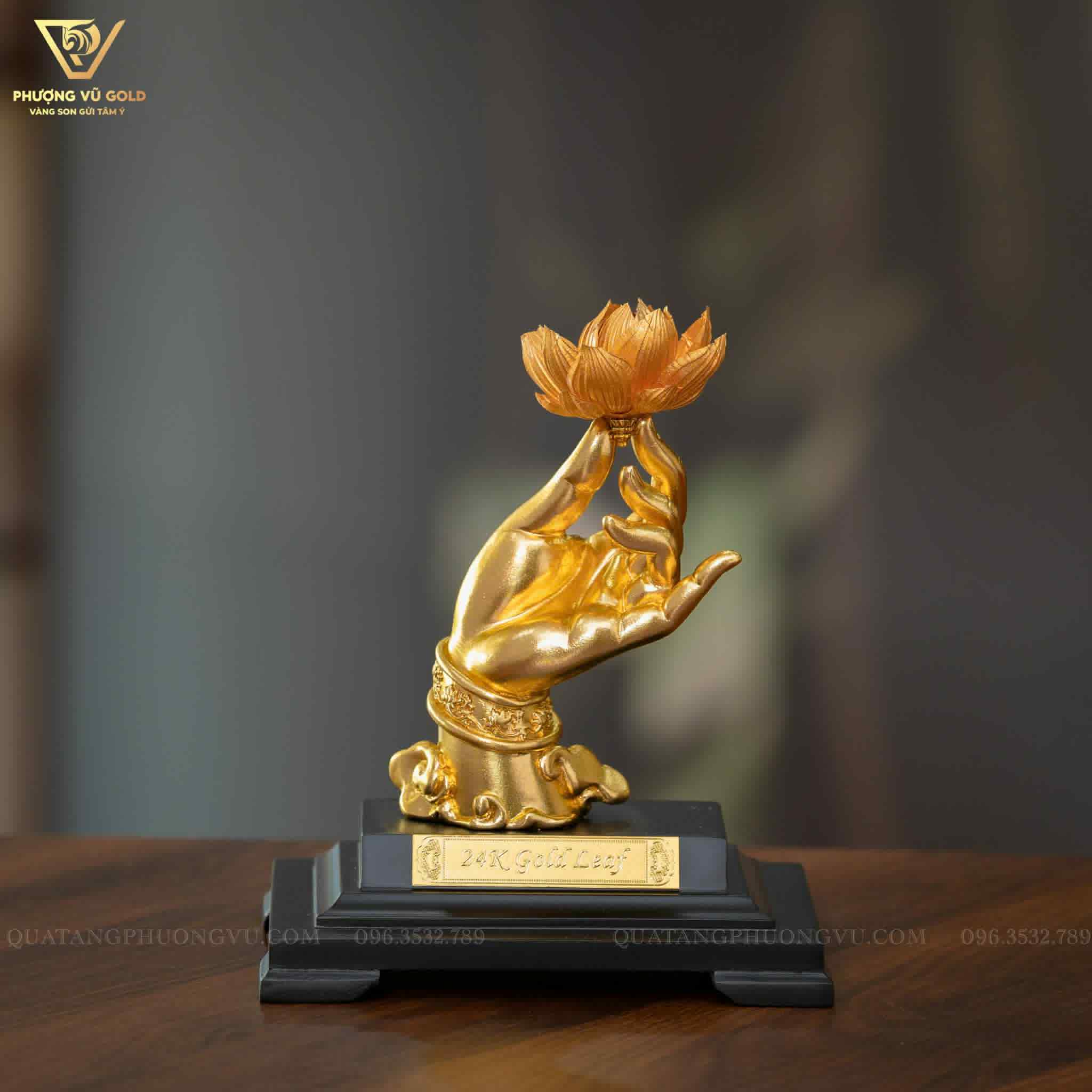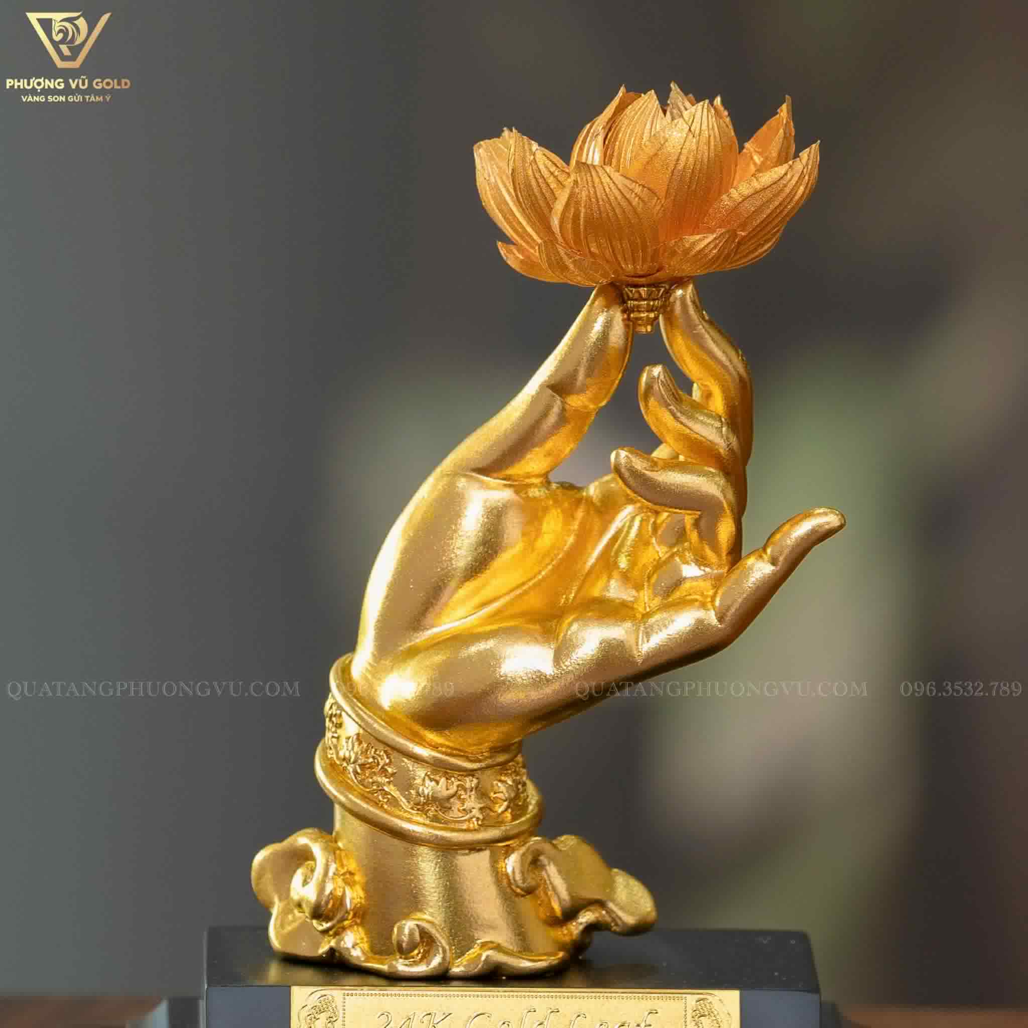 Tay Phật Hoa Sen Mạ Vàng 24K được chế tác tỉ mỉ bởi các nghệ nhân lành nghề, với từng đường nét mềm mại, uyển chuyển.