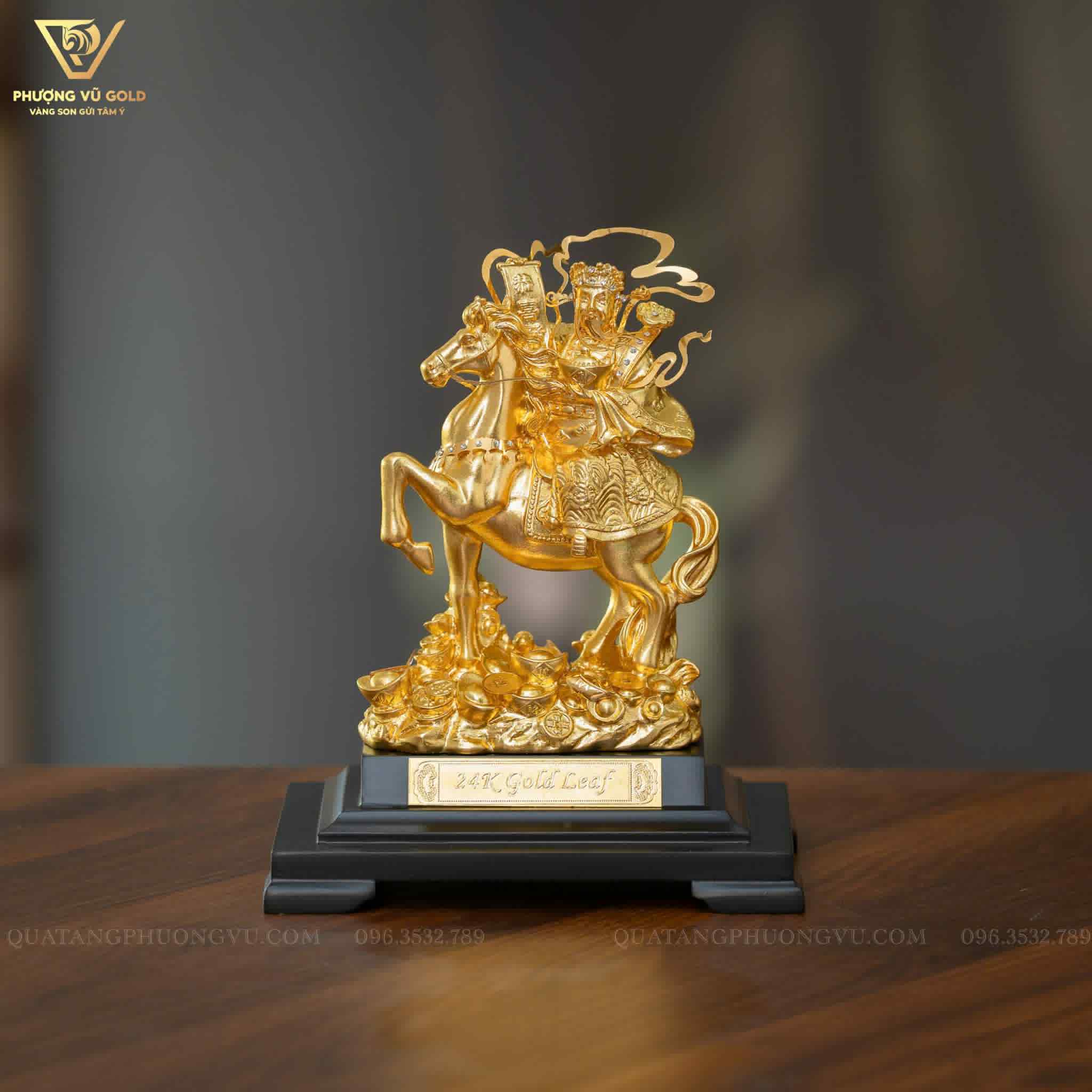 Thần Tài Cưỡi Ngựa Dát Vàng 24K được chế tác tinh xảo, phủ lớp vàng 24K sáng bóng.