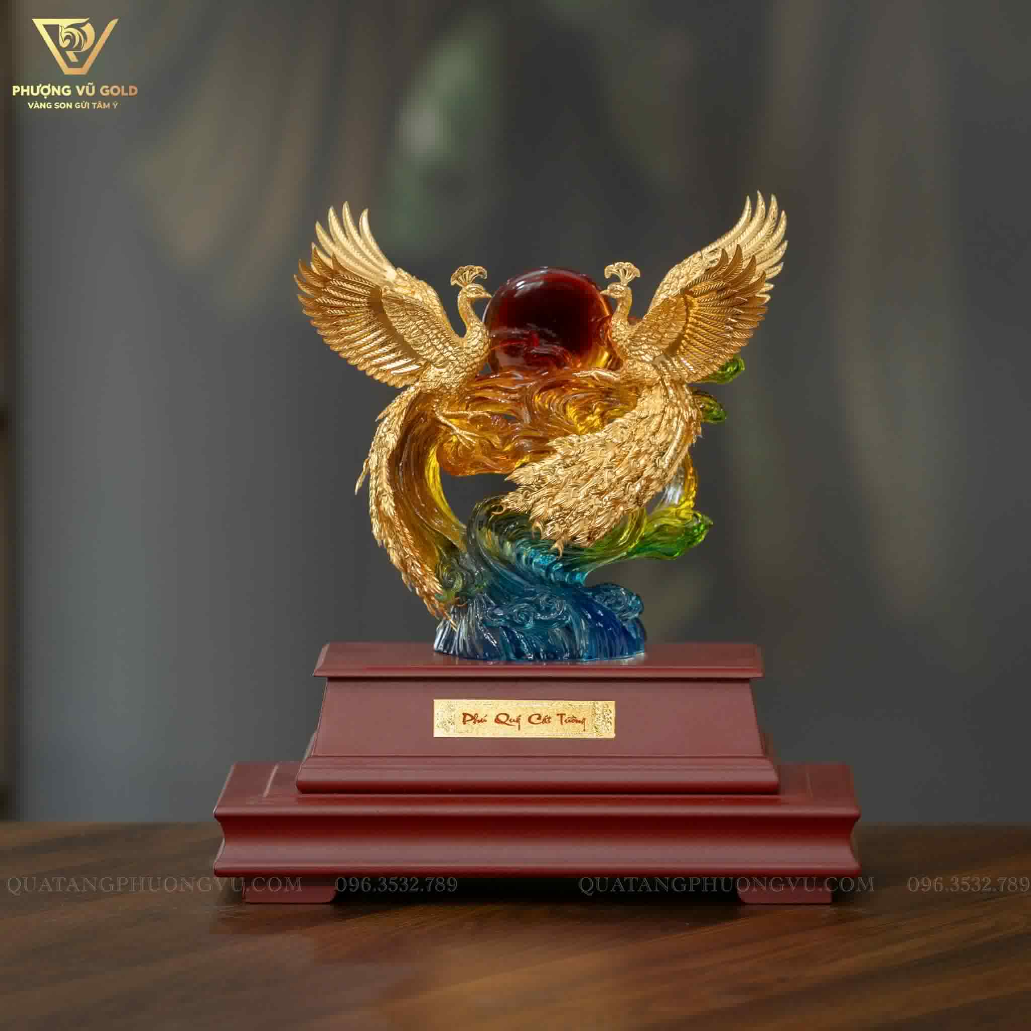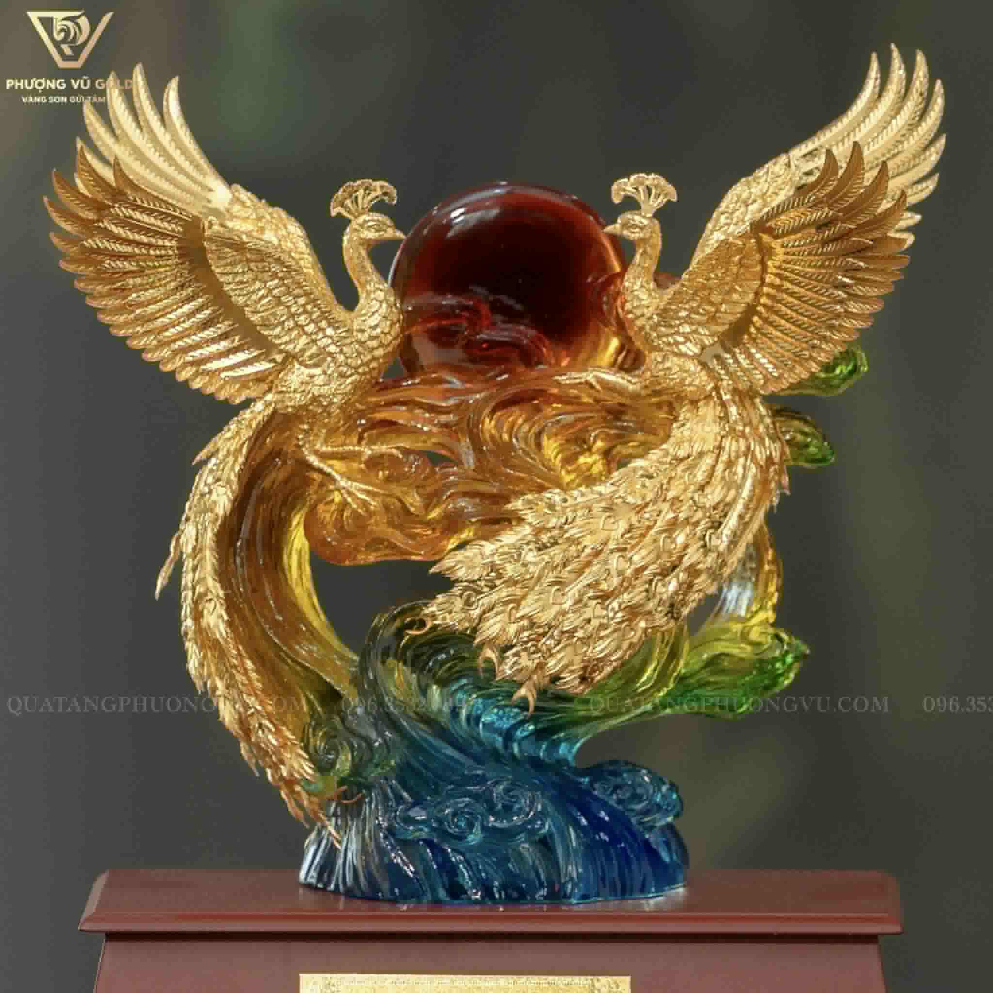 Tượng Đôi Chim Phượng Hoàng Dát Vàng 24K là món quà tặng phong thủy cao cấp, được chế tác tỉ mỉ từ pha lê lưu ly phối vàng thật 24K, mang vẻ đẹp sang trọng, tinh tế và giàu giá trị biểu trưng.