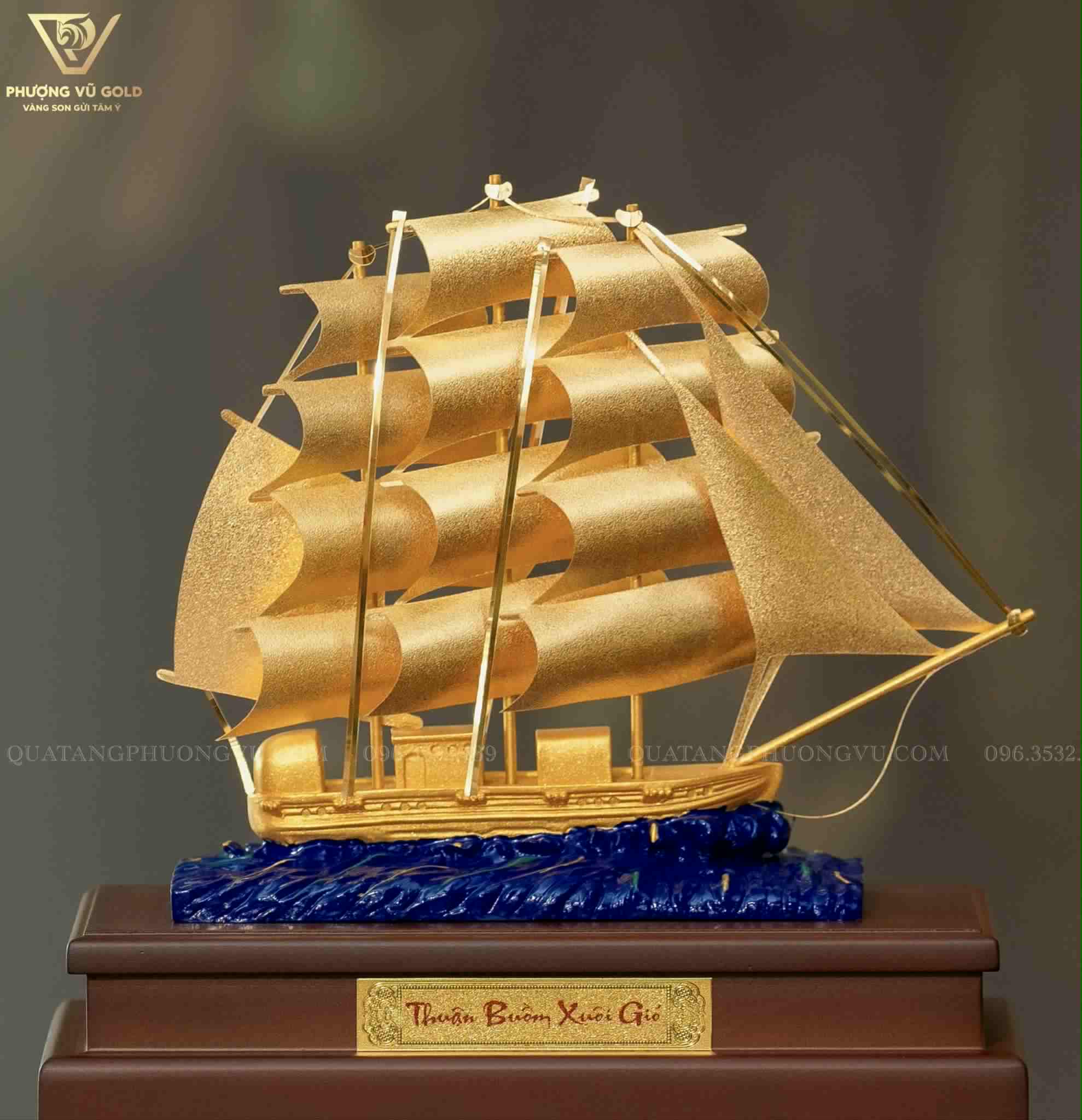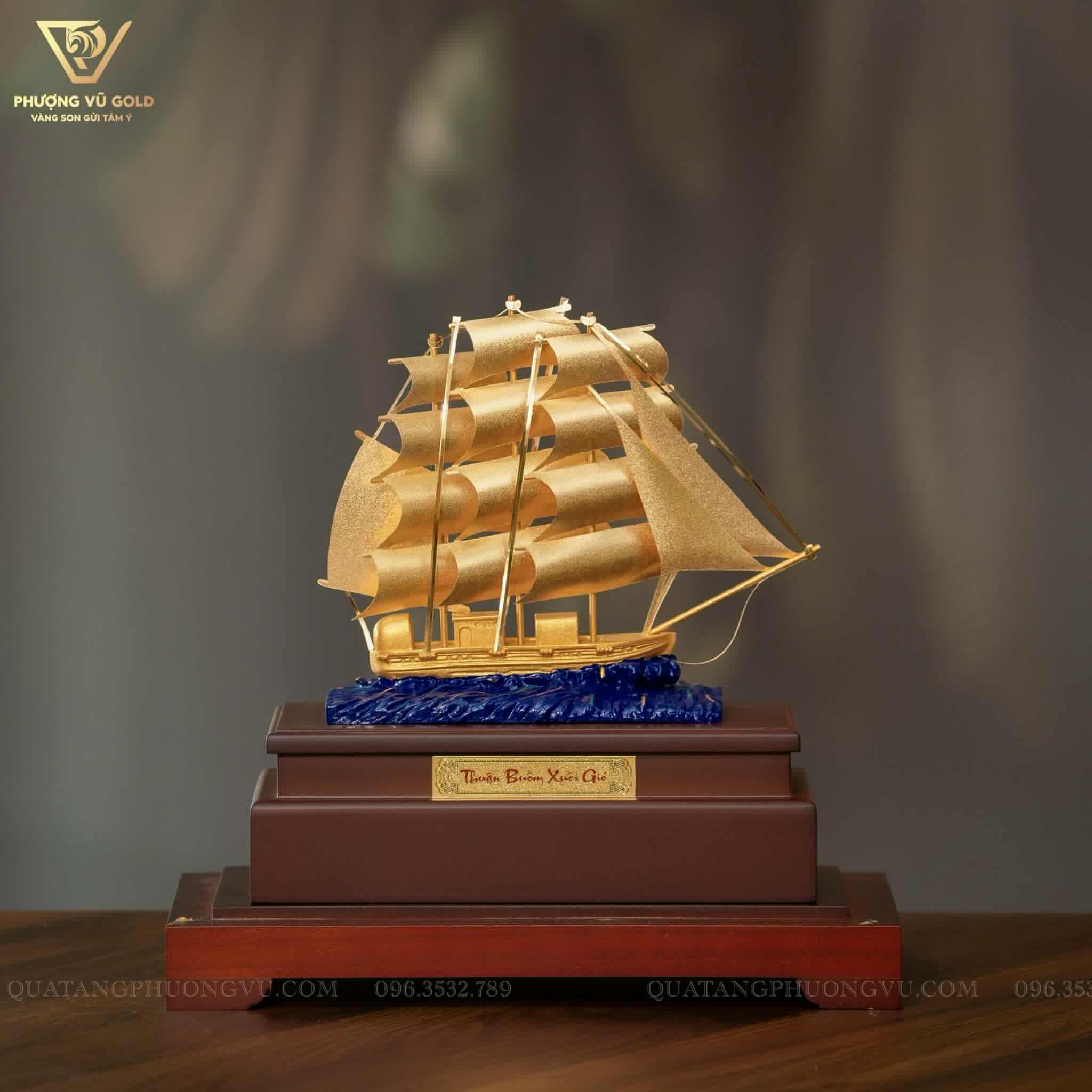 Thuyền Vàng Phong Thủy 24K Trang Trí Văn Phòng Cao Cấp | Phượng Vũ Gold