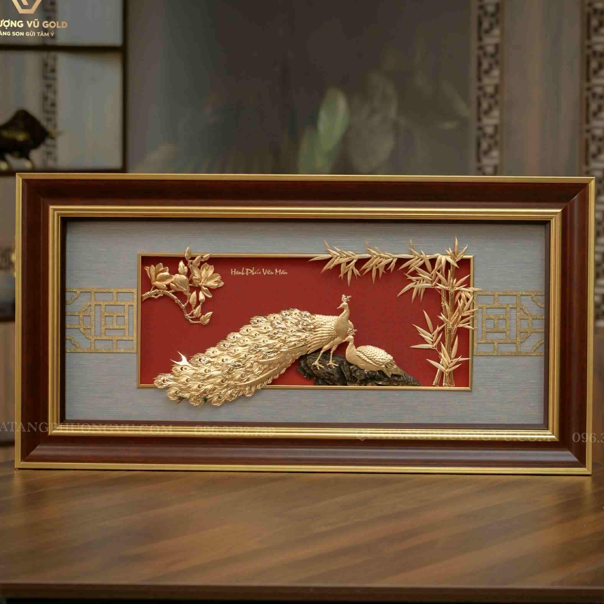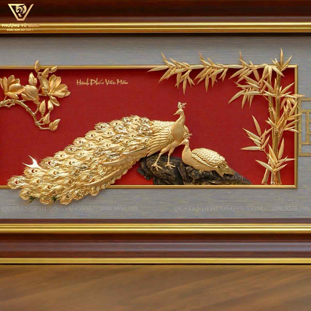 Tranh Chim Công Dát Vàng 24K – Quà Tặng Cưới | Phượng Vũ Gold