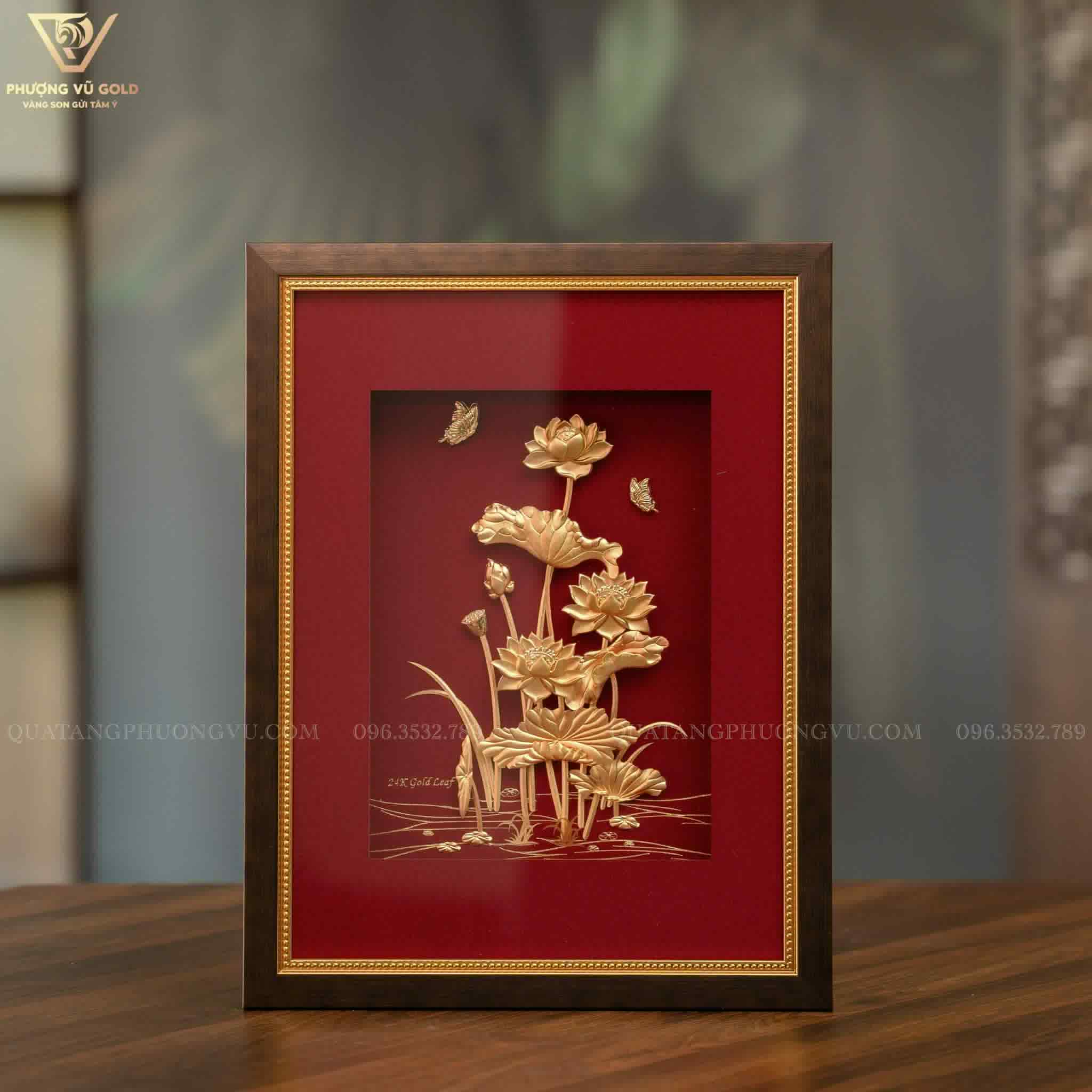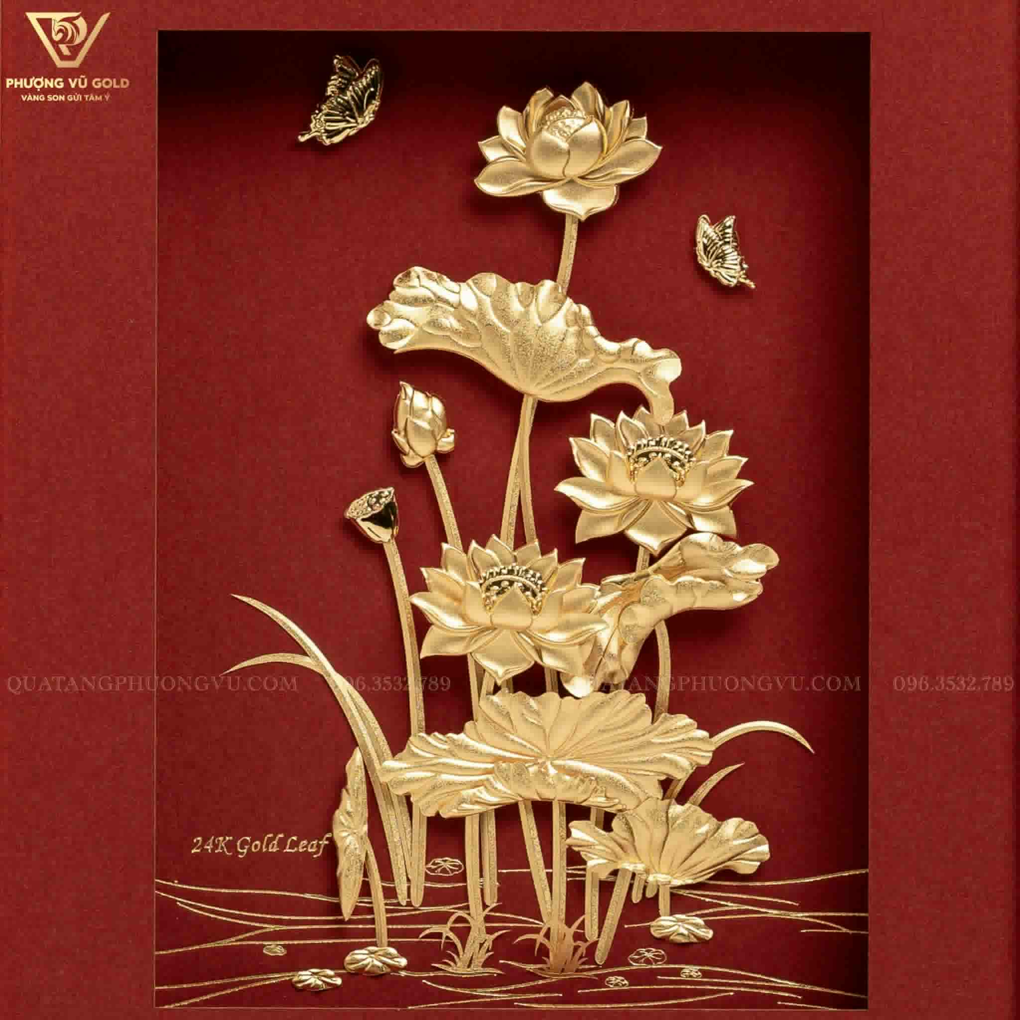 Tranh Hoa Sen Dát Vàng 24K Cao Cấp – Phượng Vũ Gold