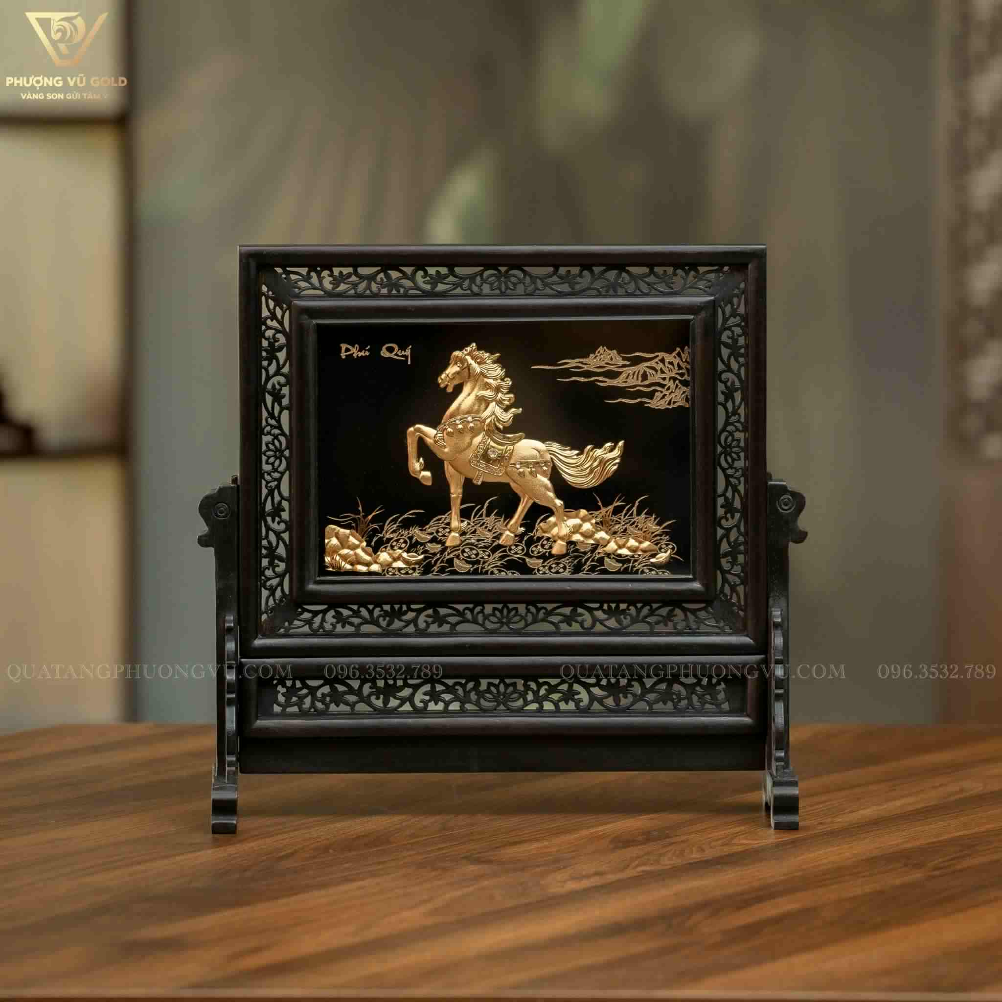 Tranh Ngựa Phú Quý Dát Vàng 24K – Quà Tặng Tết Bính Ngọ 2026 | Phượng Vũ Gold