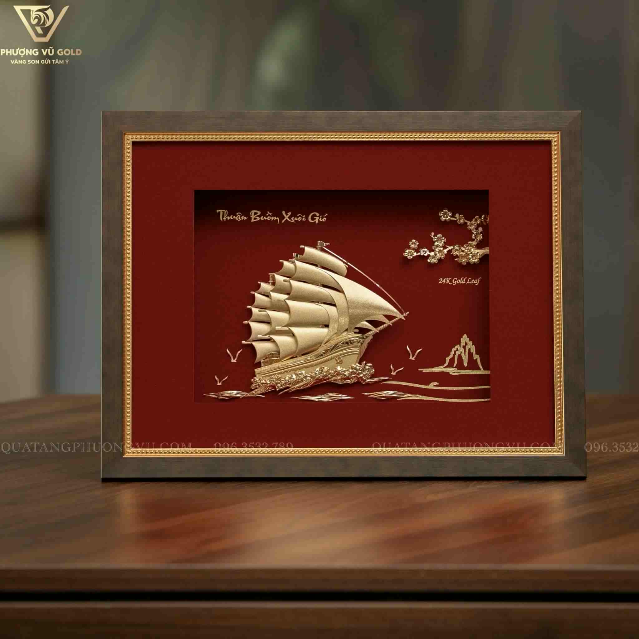 Tranh Thuận Buồm Dát Vàng 24K – Quà Tặng Doanh Nghiệp Cao Cấp | Phượng Vũ Gold