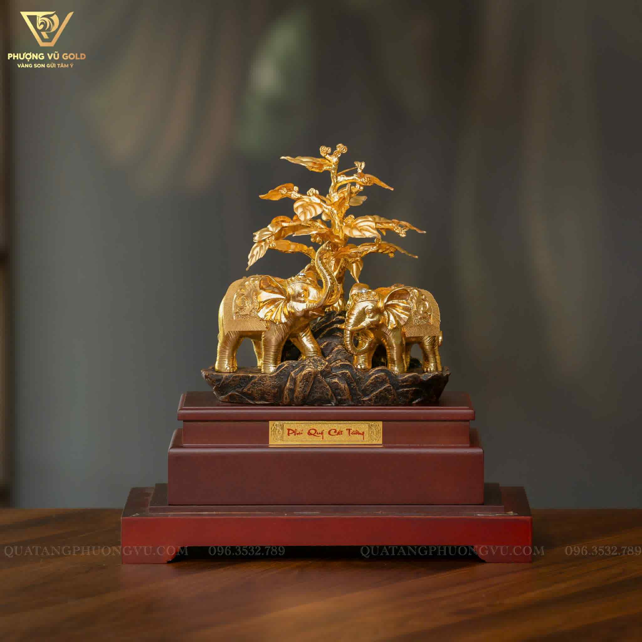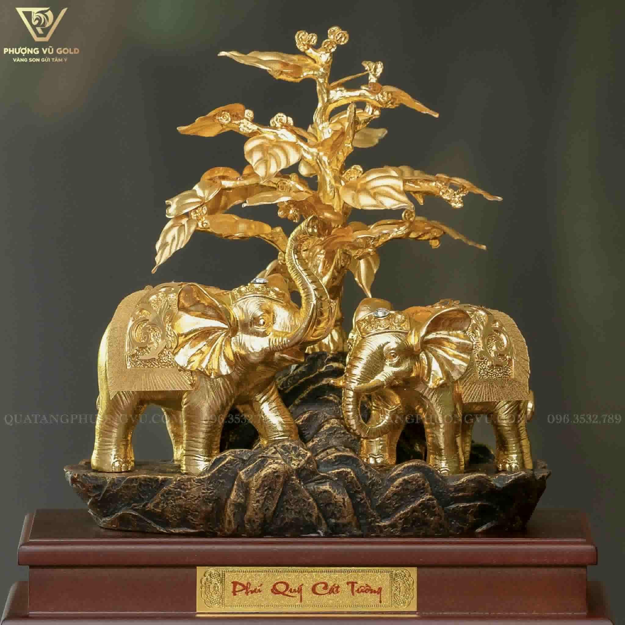 Tượng Đôi Voi Phú Quý Dát Vàng 24K – Quà Tặng Phong Thủy Tài Lộc | Phượng Vũ Gold