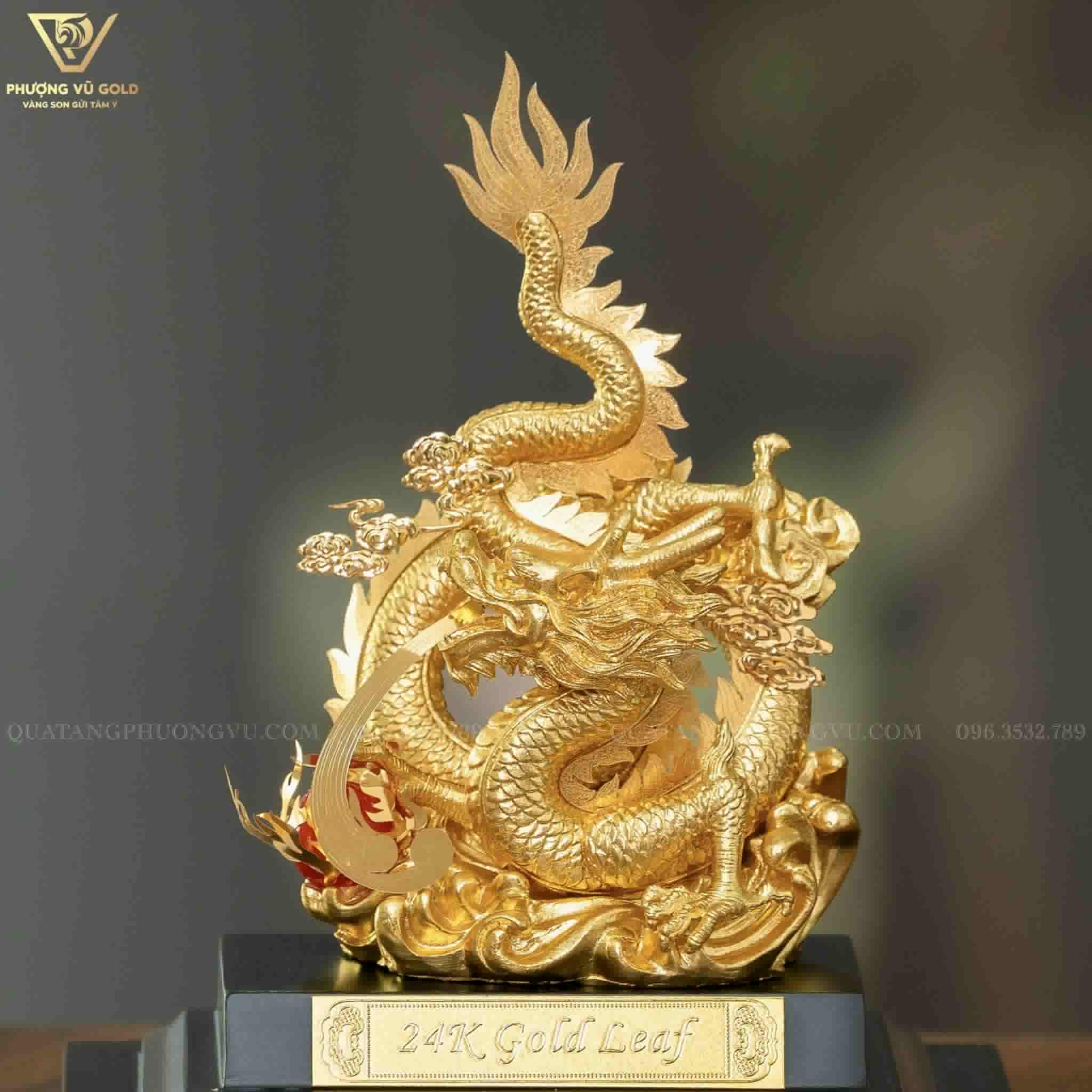 Tượng Rồng Nhả Ngọc Dát Mạ Vàng 24K – Quà Tặng Phong Thuỷ | Phượng Vũ Gold